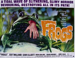 I came home wiped out after a lousy day at work and wanted nothing more than to dissolve into bed with a little TV action to numb me. After checking the programming guide, there was nothing on! Figures. One last check and I stumbled upon “Frogs” being shown on Robert Rodriguez’s El Rey Network. Saved! El Rey has been showing some cool movies recently. Call them grindhouse features or exploitation or fantastic cinema films, whatever, you will find a wide range of cinema treats to keep you entertained. So, “Frogs” is a Seventies flick that touches on the theme of ecological disasters. What calamity may result if we unwittingly tamper with Mother Nature? And by tampering I mean, what effects will pollution, auto emissions, deforestation, ozone depletion, etc. have on the environment and the creatures living within that environment? It seems pollution is the likely culprit responsible for turning swamp dwelling creatures into aggressive human killers in this one. Plenty of creepy crawlies scamper through this film including snakes, birds, alligators and, of course, frogs. Humorous acting turns by Ray Milland, a very young Sam Elliott, and Adam Rourke. My favorite human offing method: death by snapping turtle!